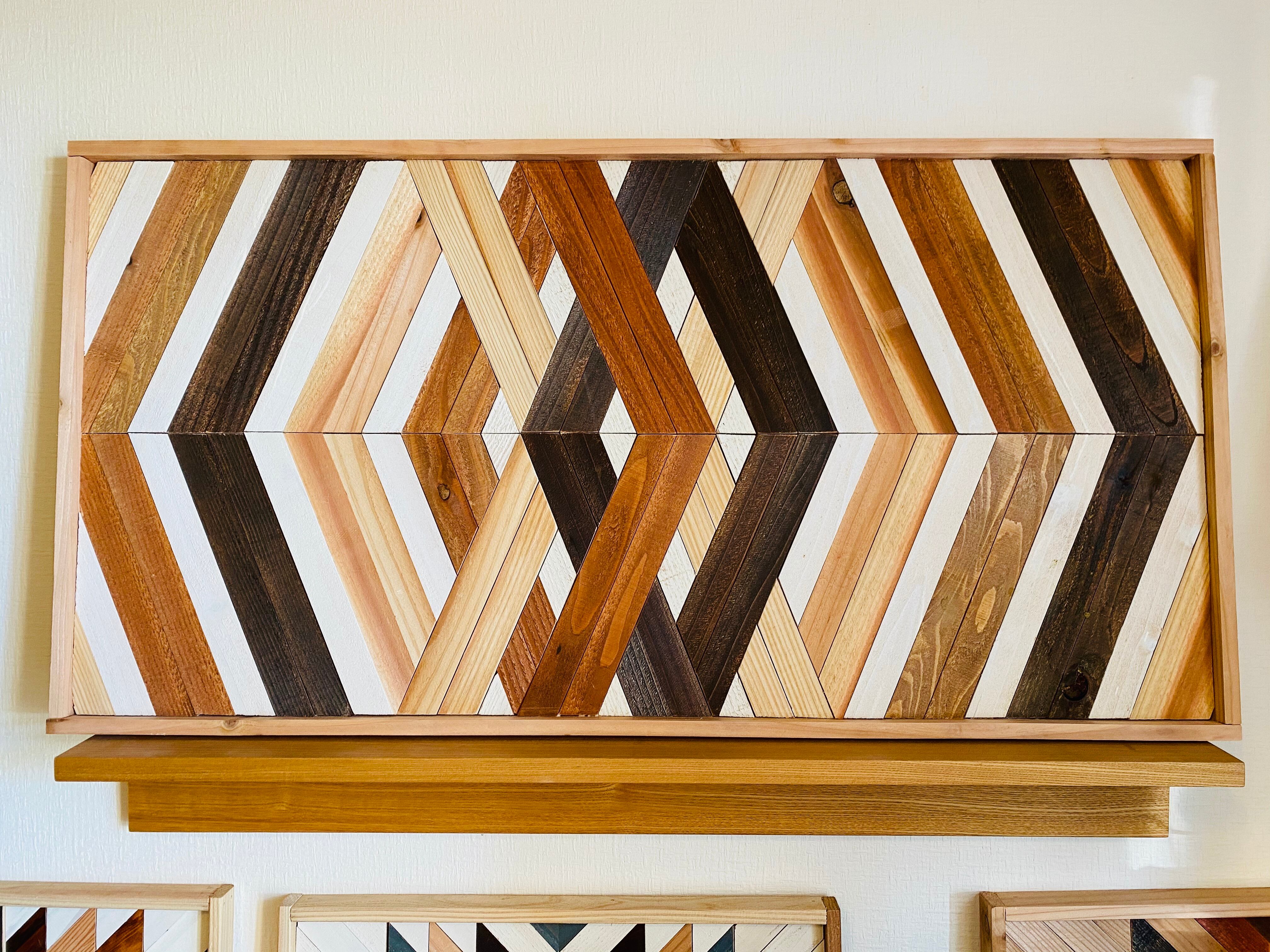 General Green Serviceオリジナルウッドタペストリー。天然木材で寄木細工されたタペストリーはすべて一点物。サイズも大きめなので、存在感のあるインテリアとしてオススメです。