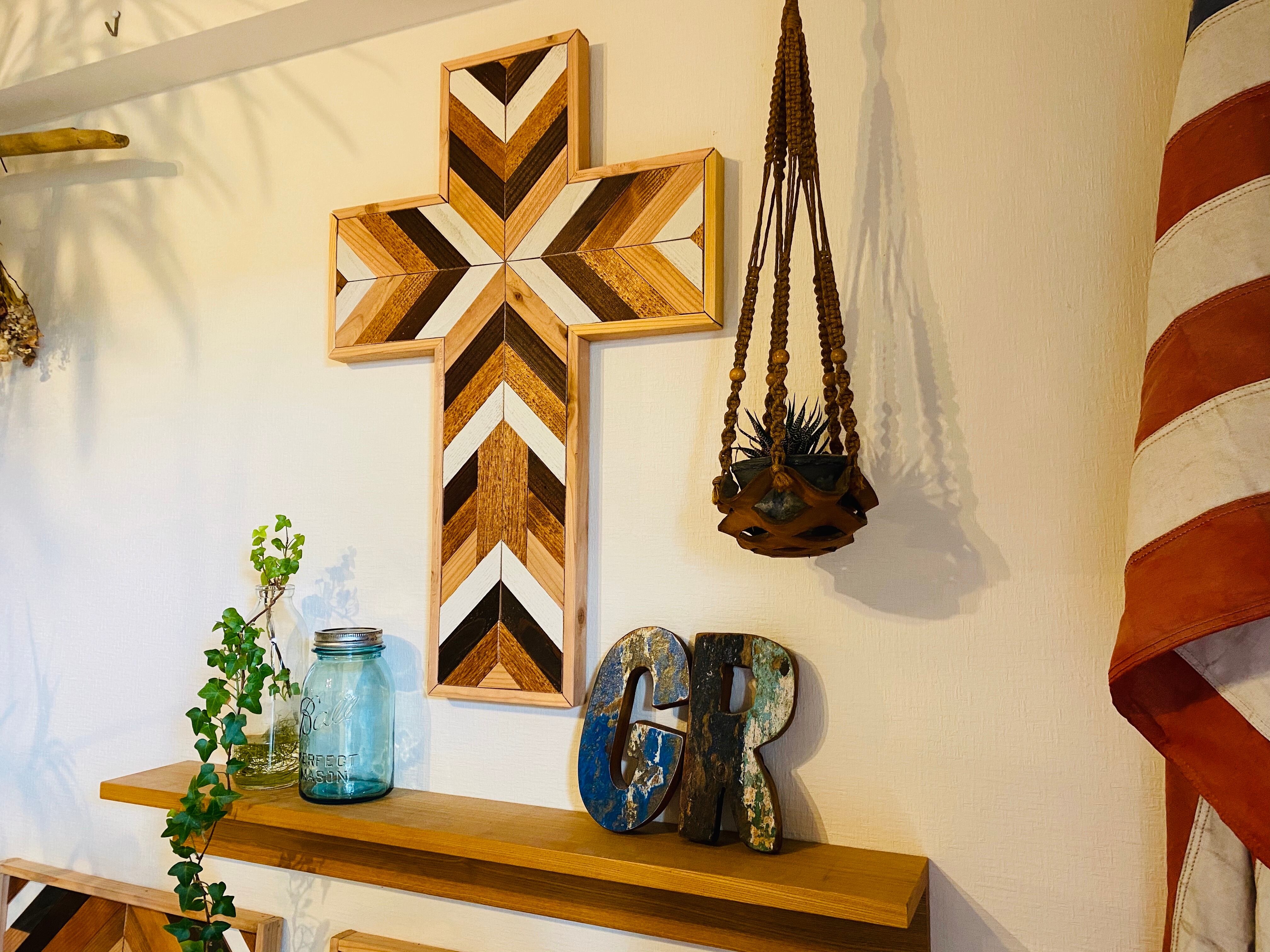 ウッド ウォールアート CROSS 48×70